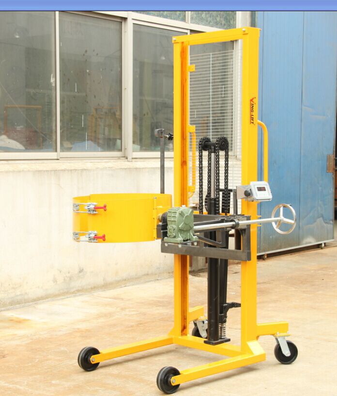 ★適合鋼制油桶和200L雙層閉口塑料桶的搬運、堆高、360度翻轉(zhuǎn)倒料于一體。