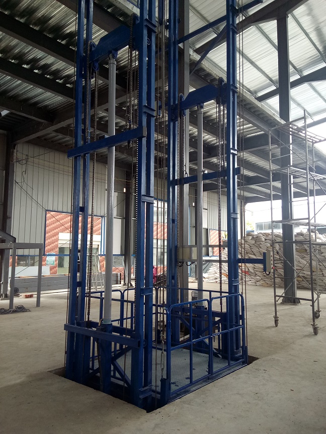 導(dǎo)軌式液壓貨梯:貨物提升機(jī)主要用各種工作層間貨物上下運(yùn)送;立體車庫(kù)和地下車庫(kù)二層以上高樓間、無(wú)法開挖地坑場(chǎng)所、頂層高度不能到達(dá)要求的場(chǎng)合等比較難解決的狹小空間,