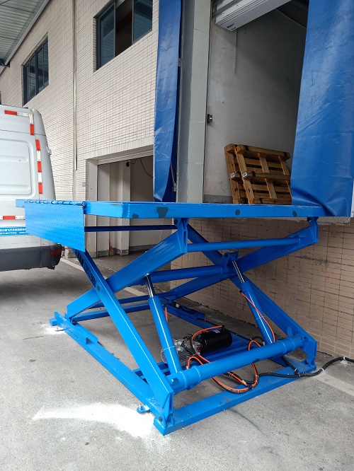 應用于地面與月臺之間,由于月臺過高,無法安裝調節(jié)板,只能安裝固定升降平臺來實現(xiàn)車輛與月臺之間的過渡,卸貨方便快捷,減少人工搬運強度,提高工作效率